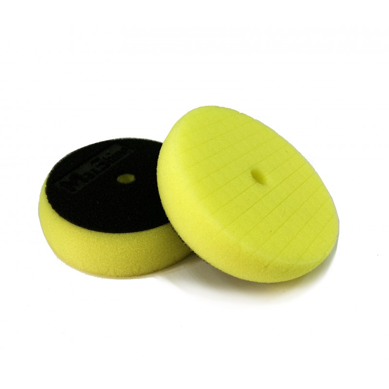 Žlutý pěnový leštící kotouč s křížovými drážkami, které efektivně odvádí teplo a rovnoměrné pokrývají leštící pastu na ošetřovaném povrchu vozu. Také s otvorem ve středu pro odvod tepla. Slouží k odstranění menších škrábanců, mikro-škrábanců a hologramů z laku pomocí exentrické leštičky jemné leštící pasty na vodní bázi. Suchý zip umožňuje snadné a pevné připevnění kotouče k unašeči. Silná pěna umožňuje hladké konturování, malý zkosený okraj umožňuje extrémně přesné leštění až k okrajům ošetřovaných ploch. Rozměry: Ø7,5cm x 2,5cm