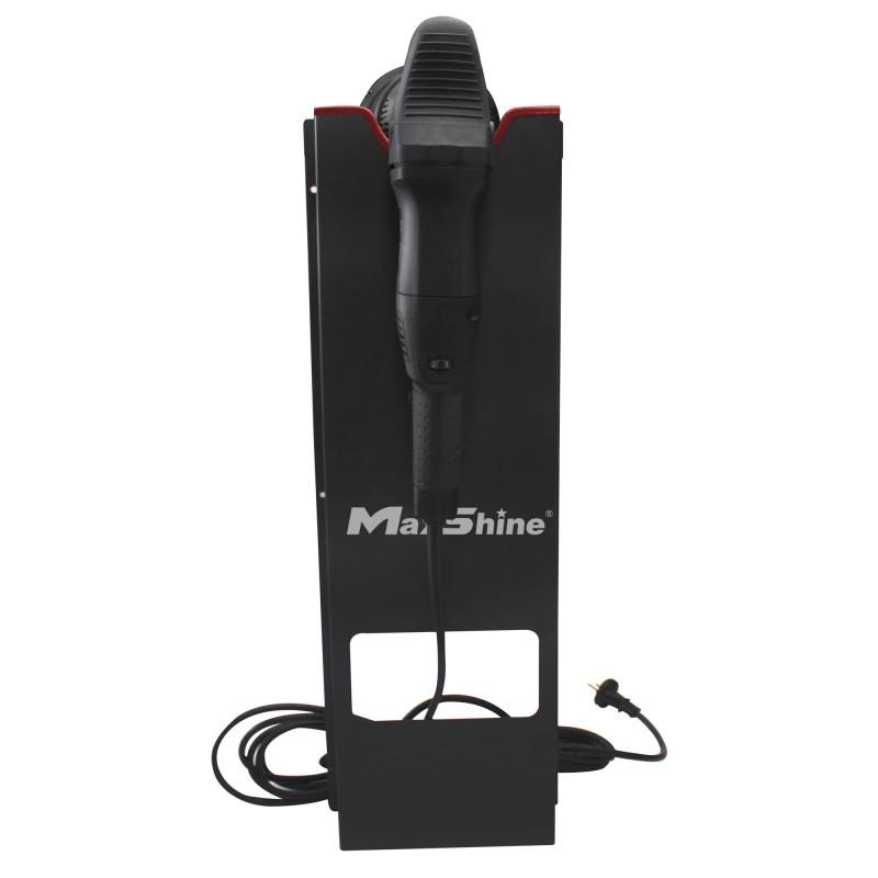 MaxShine nástěnný držák na zavěšení jedné leštičky z kvalitní oceli s černým lakováním, 4xšroub pro uchycení a červené lemování jako dekorace a ochrana proti oděru