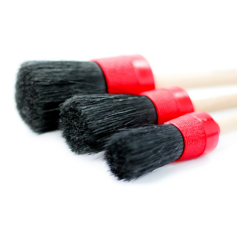 Sada detailingových štětců. Pro čištění ventilačními otvorů, spojů na palubní desce a jejich konzol.Průměr hlavy: 2,7cm, 3cm, 4cm. Délka štětin 30mm. 2 druhy tvrdosti štětin