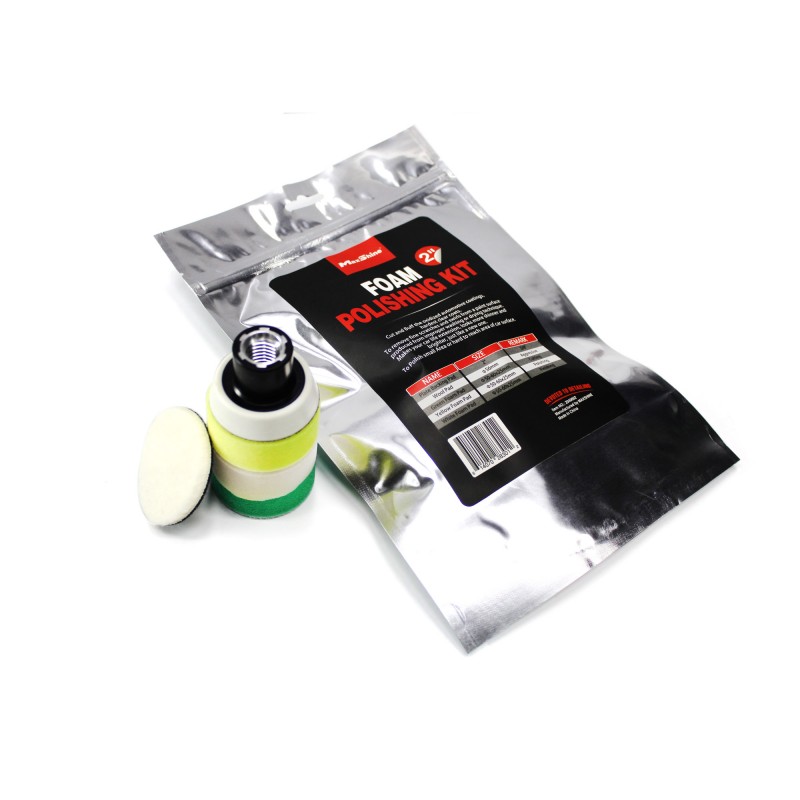 Sada mini unašečů a kotoučů pro dokonalé broušení, leštění a dokončování. Obsahuje všechny typy kotoučů pro dokonalý detailing. Sada obsahuje: 1x MINI UNAŠEČ pro koutouče Ø5,0cm se závitem M14, Vlněná podložka průměr Ø5,5cm x 1cm,1x zelený brousící kotouč,1x žlutý leštící kotouč,1x bílý dokončovací kotouč: všechny o průměru Ø5,0cm 6,0cm x 2,5cm