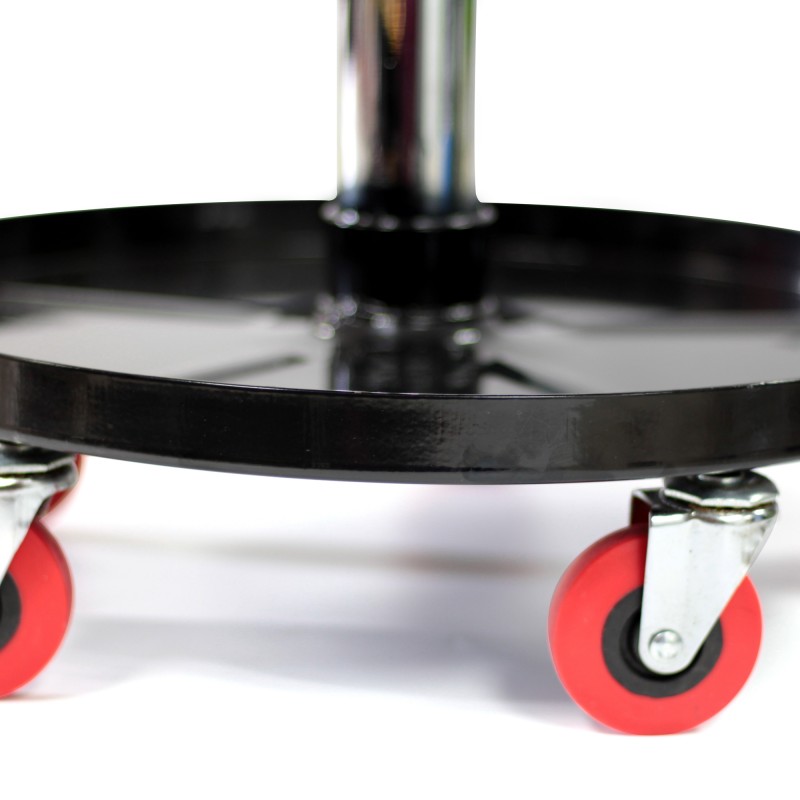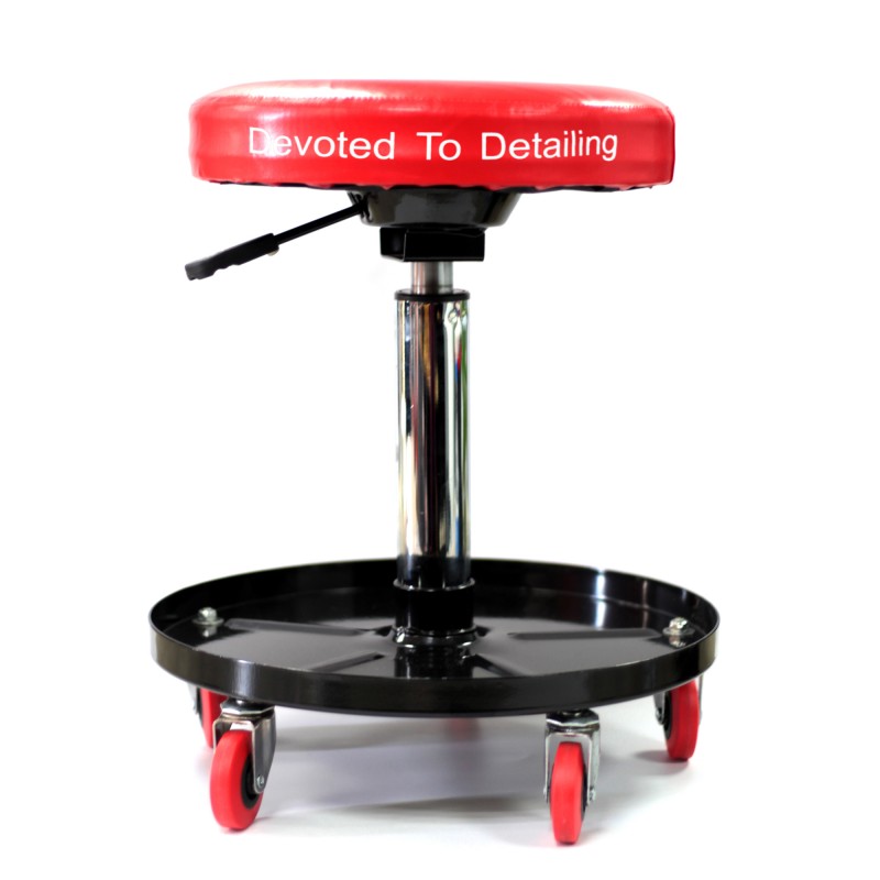 Detailingová stolička s nastavitelným otočným sedátkem a vyrobená z tvrdé oceli. Umožní pohodlně sedět v libovolné výšce a snadno dosáhnout na každý komponent automobilu. Otáčení o 360° zajišťuje maximální mobilitu bez zbytečného pohybu. Praktický odkládací tác na nářadí zajistí aby všechny potřebné pomůcky byly na dosah ruky, šetří čas i nervy. Barva: černá, červená. Minimální výška sedátka: 41,5cm. Maximální výška sedátka: 55cm