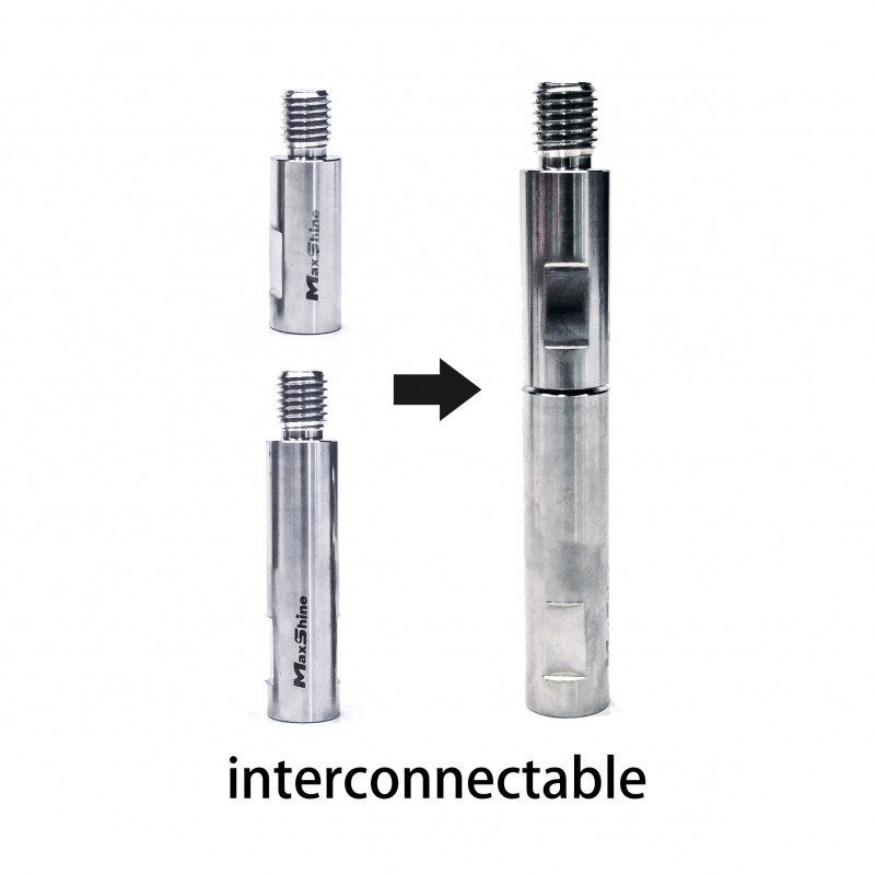 Sada prodlužovacích hřídelí pro dosažení těsných, hůře dostupných částí karoserie, jako jsou kulatá zpětná zrcátka, prahy spoilerů, difuzory a nárazníky při rotační leštění. Použití prodlužovacího hřídele zajistí přesné a bezpečné leštění těchto komponentů bez rizika poškození laku. Tyto vysoce kvalitní hřídele z nerezové oceli jsou dodávány v délkách 50mm,80mm,120mm a jsou opatřeny ploškami pro montáž/demontáž pomocí klíče. Jsou pro leštičky a kotouče se závitem M14.