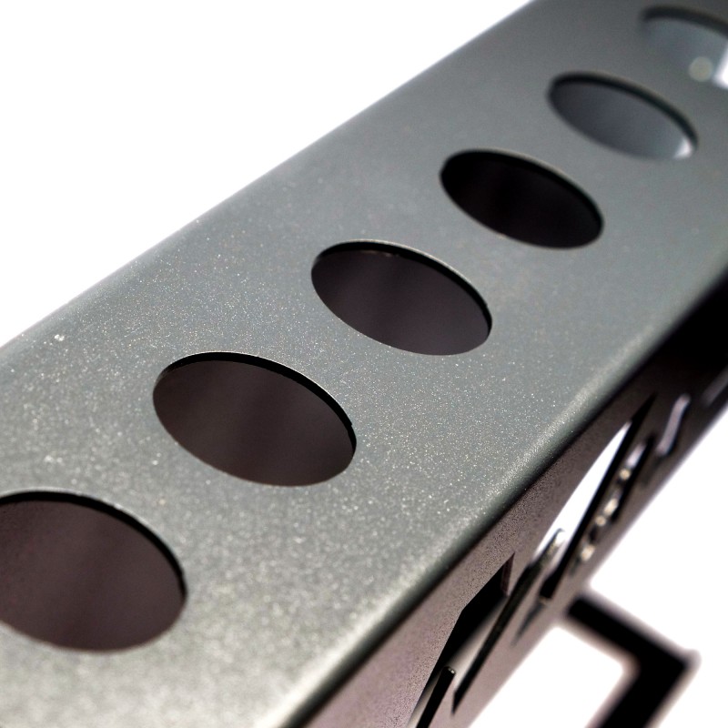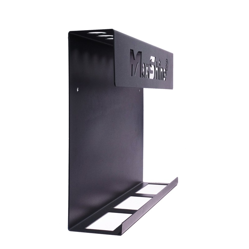 Multifunkční nástěnný držák - organizer - z kvalitního železa s matným, černým lakem a gumovým lemováním. Délka: 41cm, Šířka: 5,5cm, Výška 24cm, 2 otvory + 2 šrouby. Vhodné pro: 500ml láhve, štětce a jiné detailingové příslušenství.